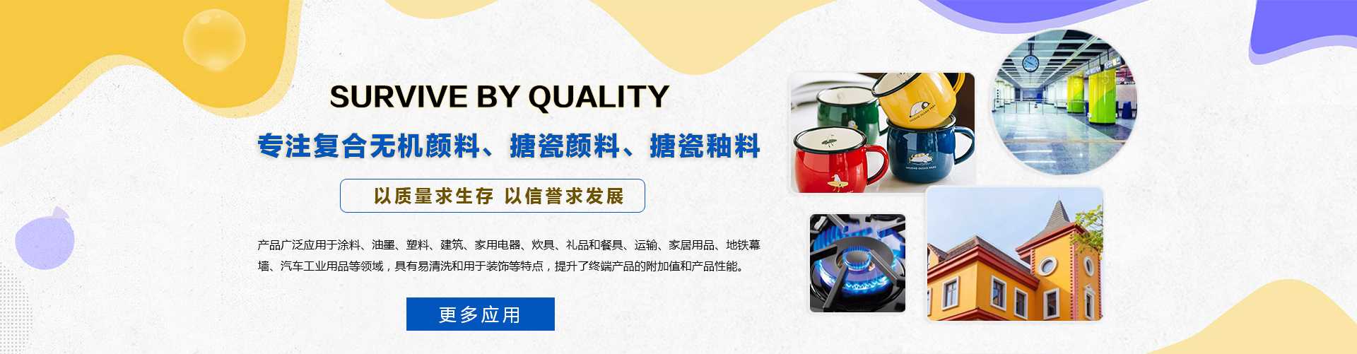 本公司生產的搪瓷釉料,廣泛應用于日用搪瓷、熱水器內膽、標牌、墻面裝飾板、爐面板、衛浴、飲具等領域......